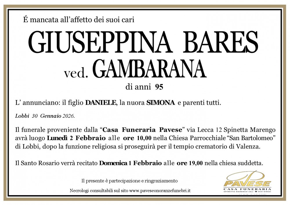 Il caro Giovanni sarà cremato e le ceneri verranno tumulate con la mamma nel cimitero di Bassignana