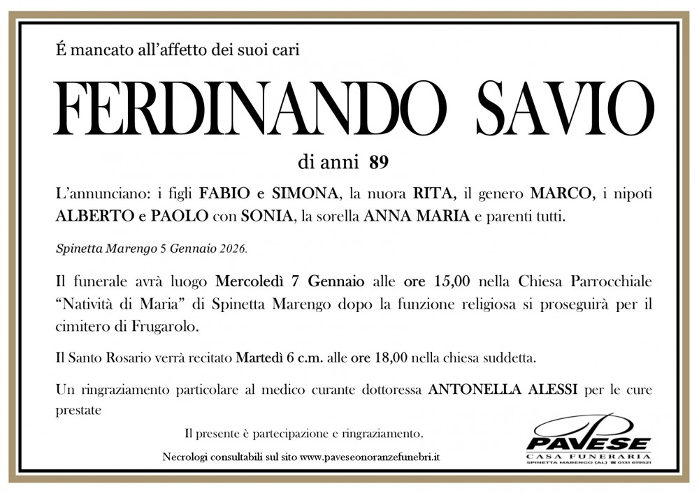 Il caro Salvatore riposerà nel cimitero di Spinetta Marengo