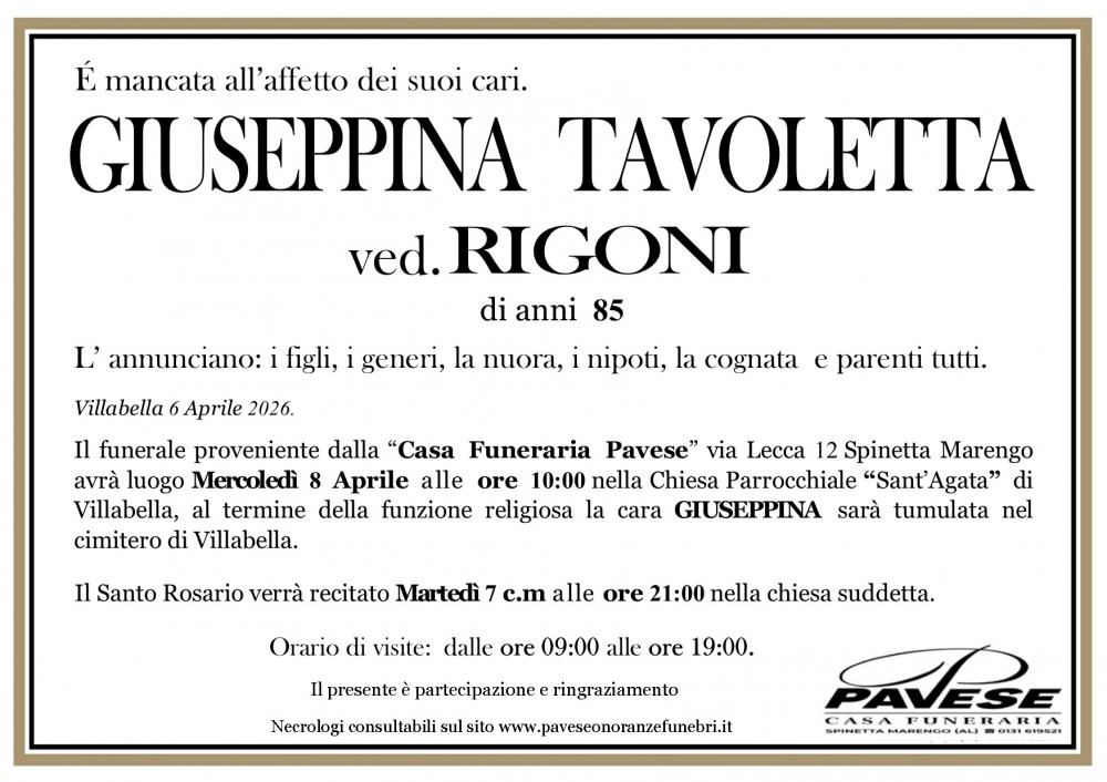 La Cara Letizia riposerà nella Cappella di Famiglia del cimitero di Spinetta Marengo